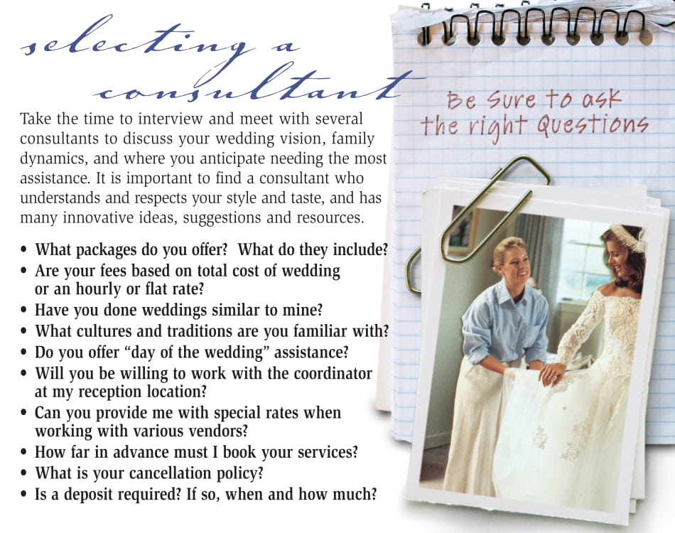 Selecting a Consultant Tips : Courtesy of The Northern Nevada Bridal Association