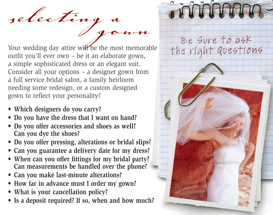Selecting a Wedding Gown - Tips - Courtesy of The Northern Nevada Bridal Association